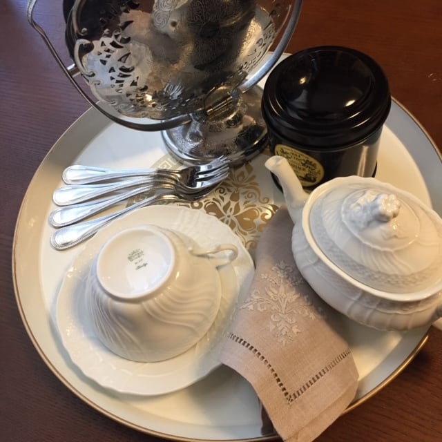 イタリアで買い付けた、ゴールドの装飾がエレガントなサーブトレイ(お盆)です。